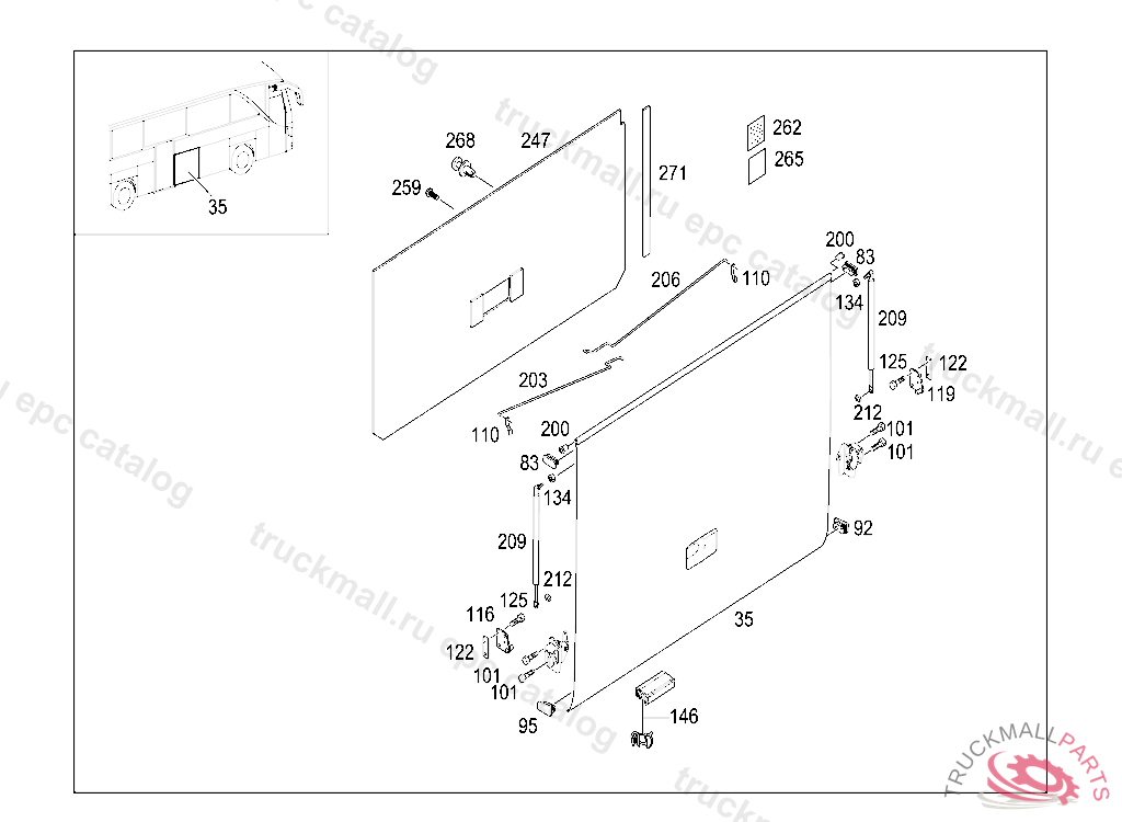 FLAP SWIVELLING FLAPS OHNE LEISTE, L1300 MM, WITHOUT DISENGAGEMENT SHIFT TUBE