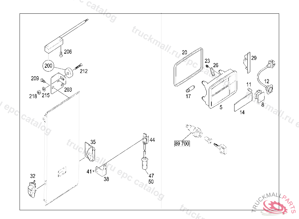 HANDLE CENTRAL LOCKING, W/O CARRIER, WITH SIDE LAMP, Replaced By: A6297501593