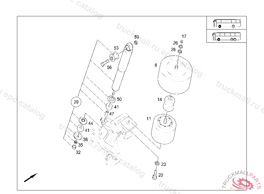 HEXAGON HEAD BOLT SHOCK ABSORBER TO AIR-SPRING-BELLOWS SUPPORT M20X1.5X110