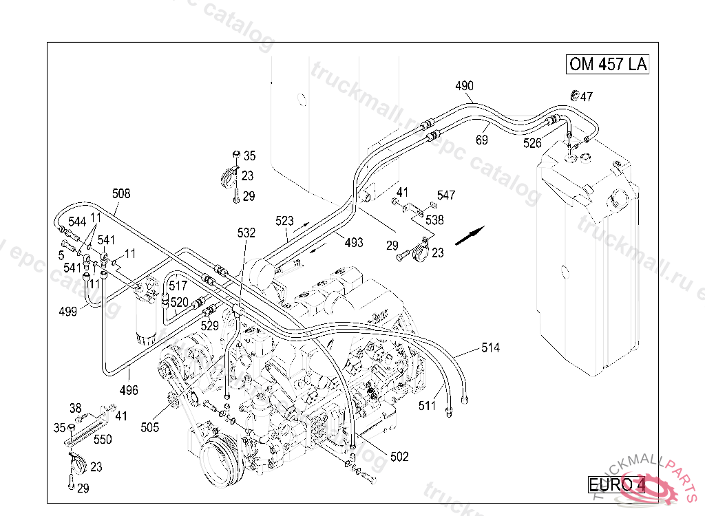 CLAMP DELIVERY AND SUCTION LINES TO ENGINE, FRONT