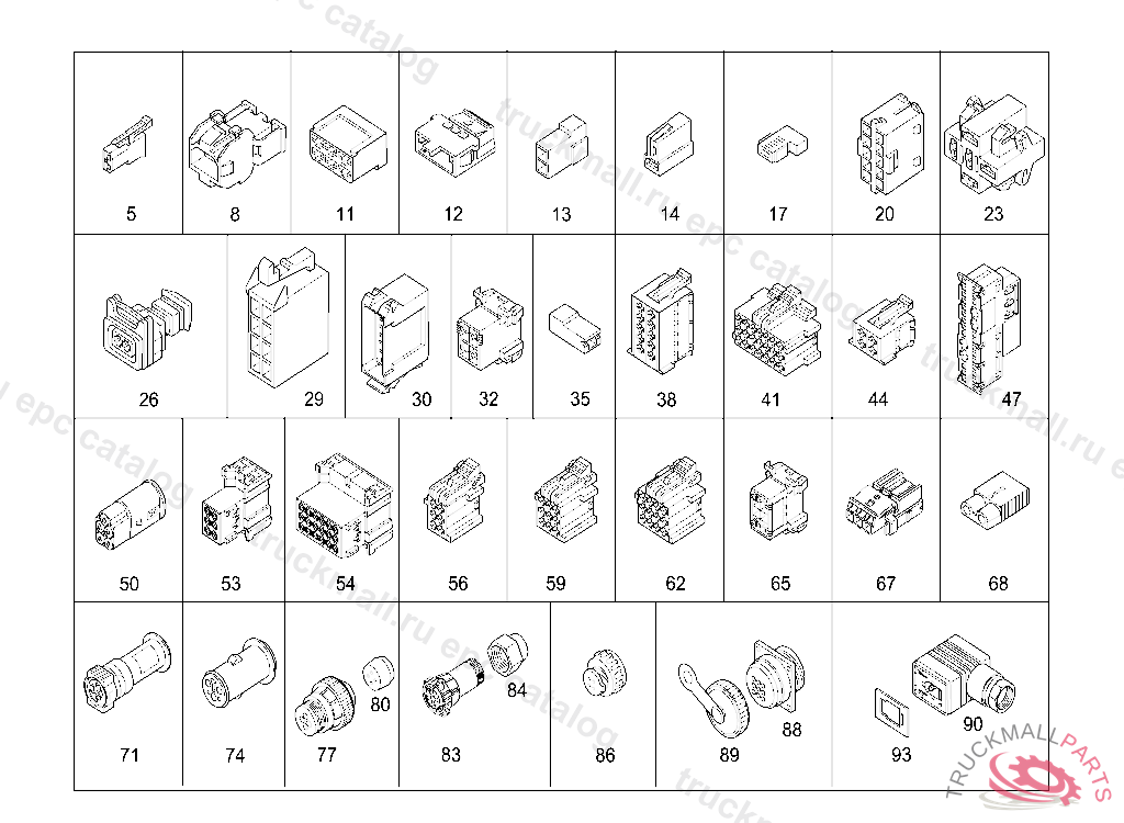 PIN BUSHING HOUSING. PLUG HOUSING FROM CHASSIS/CAB CONNECTION POINT TO TACHOGRAPH