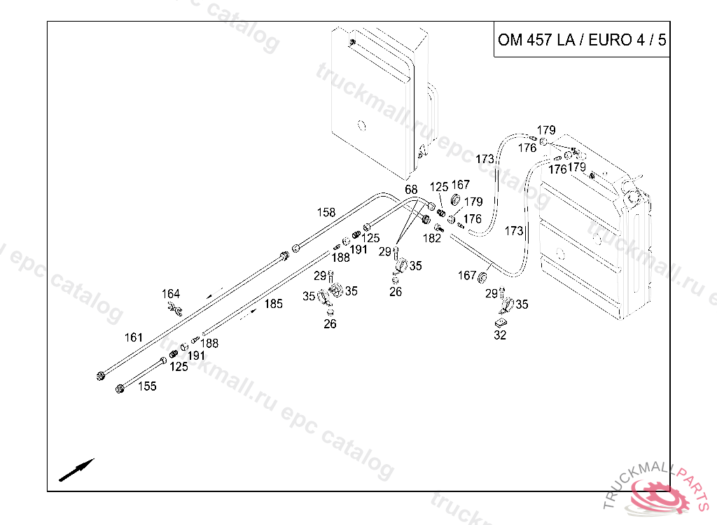 CLAMP DELIVERY AND SUCTION LINES TO ENGINE, FRONT