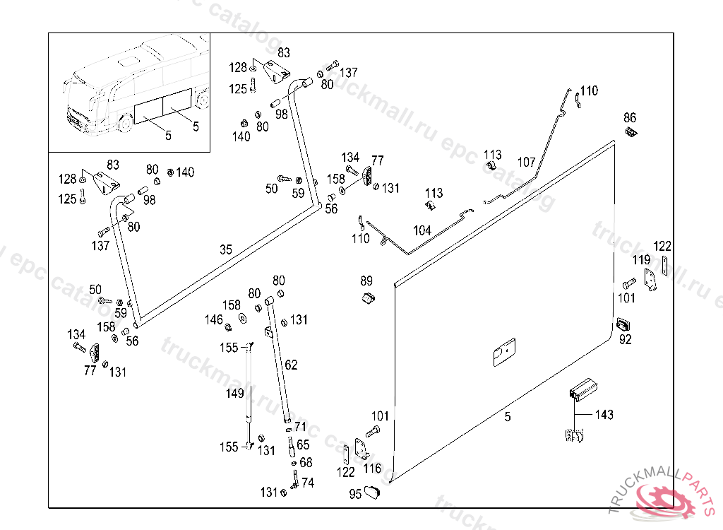 LOCK RING , 385.068,069 ON VEHICLES WITH DB CAB ONLY 385.019 FOR USE WITH SHORT MERCEDES-BENZ CAB