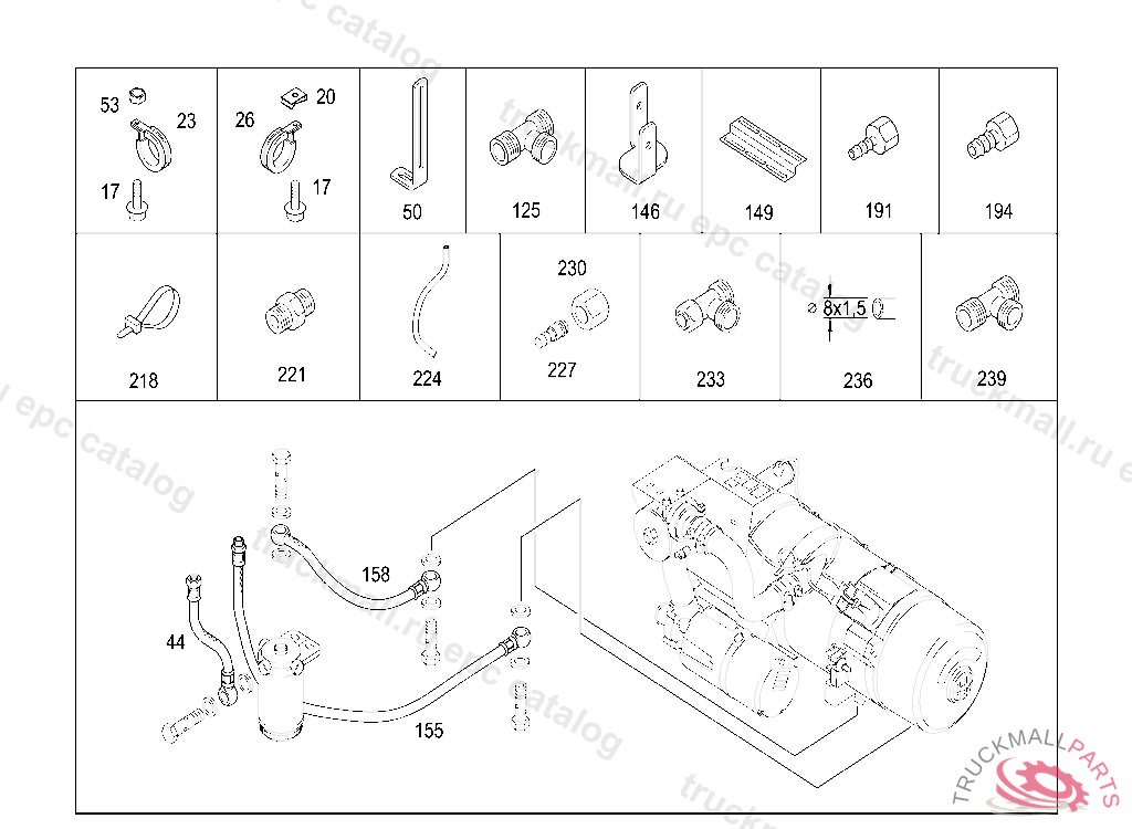 CLAMP SUCTION/DELIVERY/RETURN LINES 15/15 MM, Replaced By: A0019950642