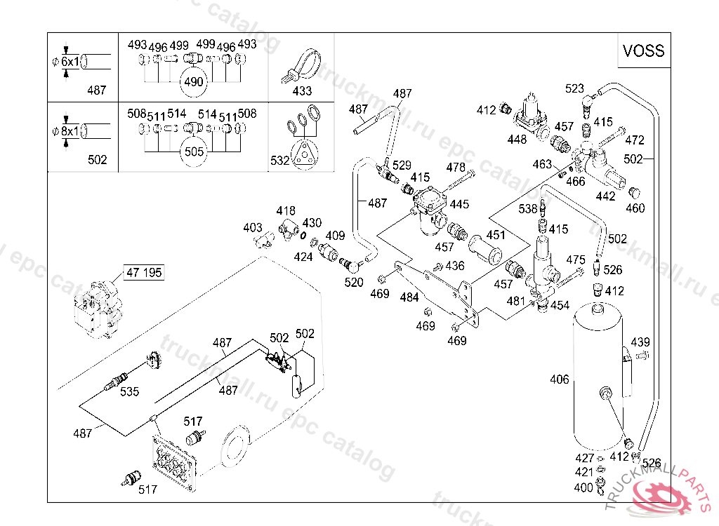 CONNECTION PIECE COMPRESSED-AIR-LINE PLUG-CONNECTION TO M16, 6MM, VOSS 232, Replaced By: A0049976989
