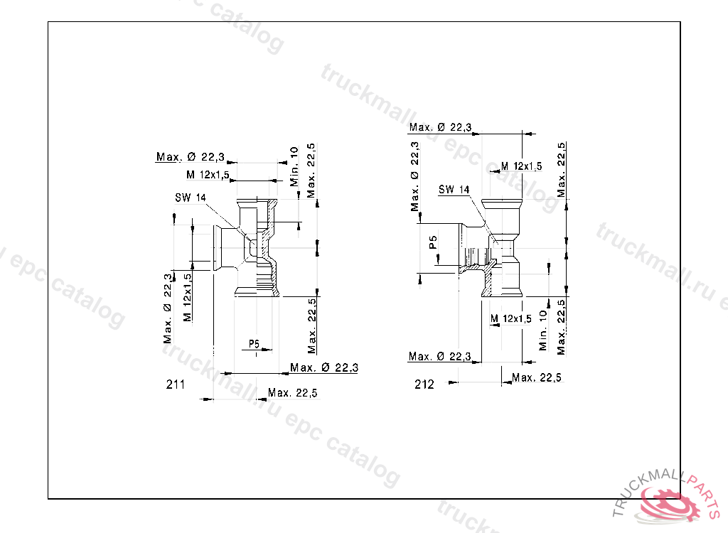 Mercedes A0009976774 - Штуцер T - образный P 5 / M 12 X 1,5