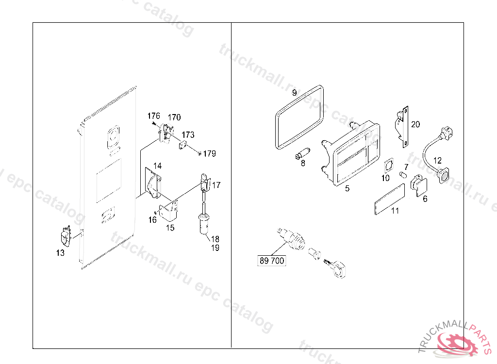 HANDLE MECHANICAL LOCKING, W/O CARRIER, WITHSIDE LAMP, FOR LUGGAGE FLAP, Replaced By: A6297501793