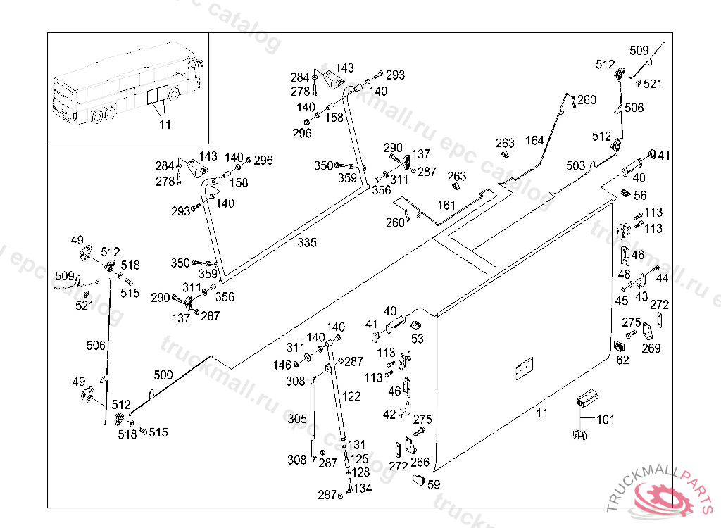 LOCK RING , 385.068,069 ON VEHICLES WITH DB CAB ONLY 385.019 FOR USE WITH SHORT MERCEDES-BENZ CAB