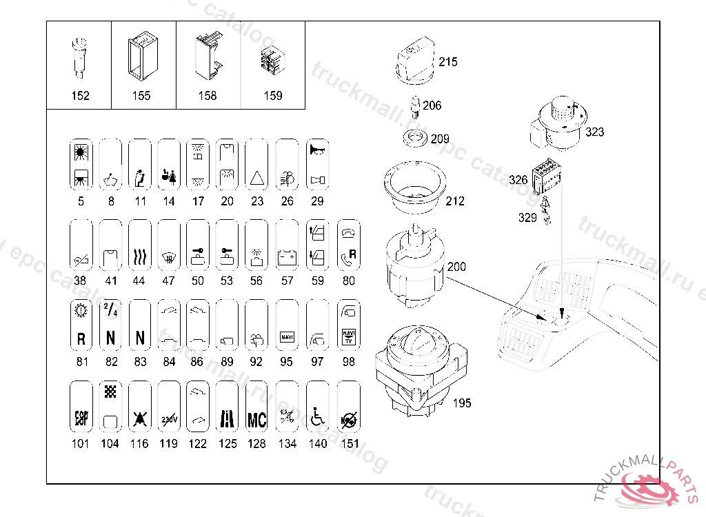 SWITCH LUGGAGE COMPARTMENT, ON THE LEFT