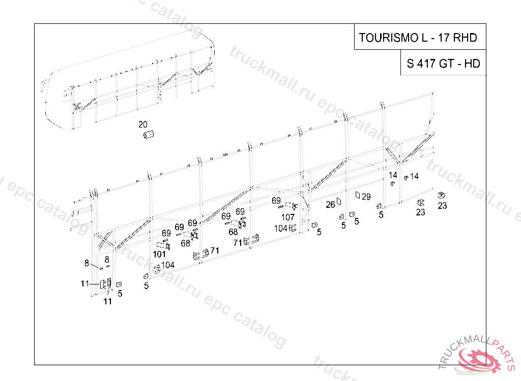 63 SIDE PANELS - 500 SUPPORT AND CONNECTORS FOR FRAME,LEFT AND RIGHT IL. 7