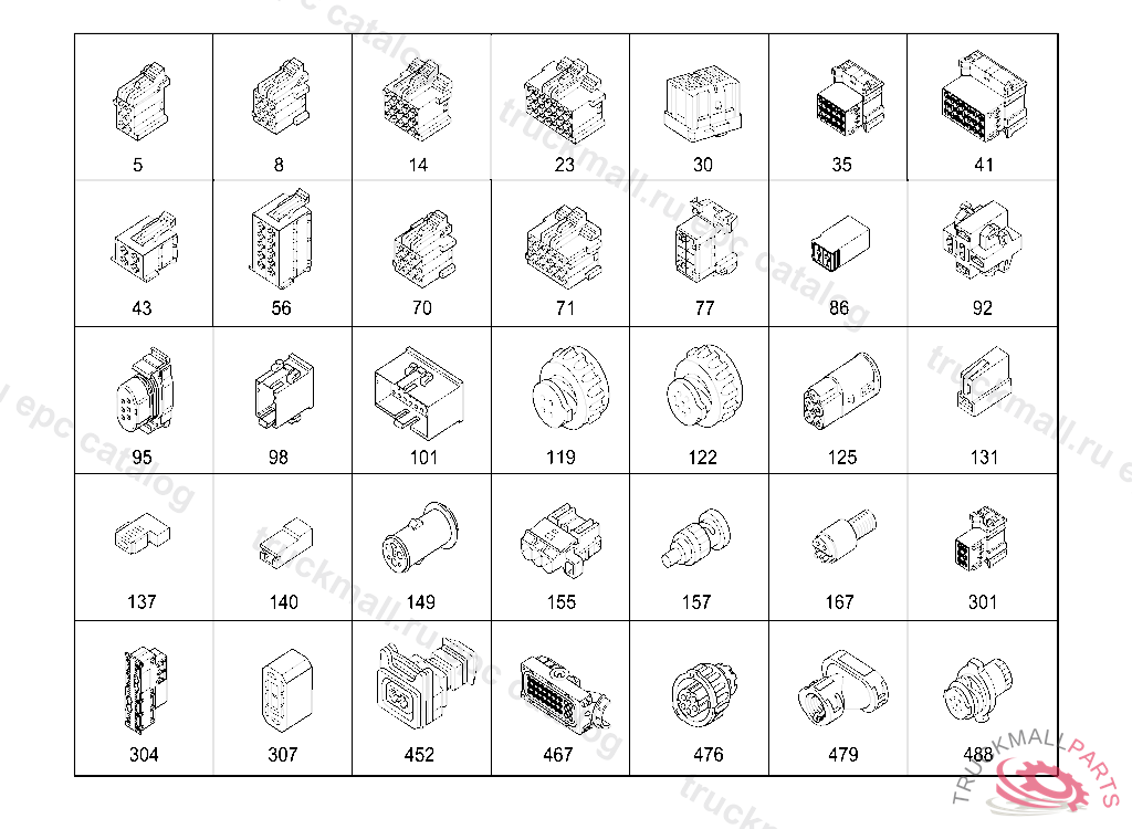 PIN BUSHING HOUSING. PLUG HOUSING FROM CHASSIS/CAB CONNECTION POINT TO TACHOGRAPH