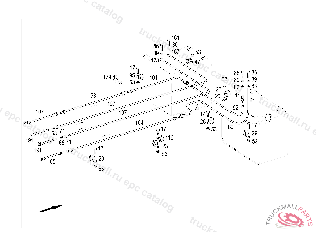 CLAMP DELIVERY AND SUCTION LINES TO ENGINE, FRONT