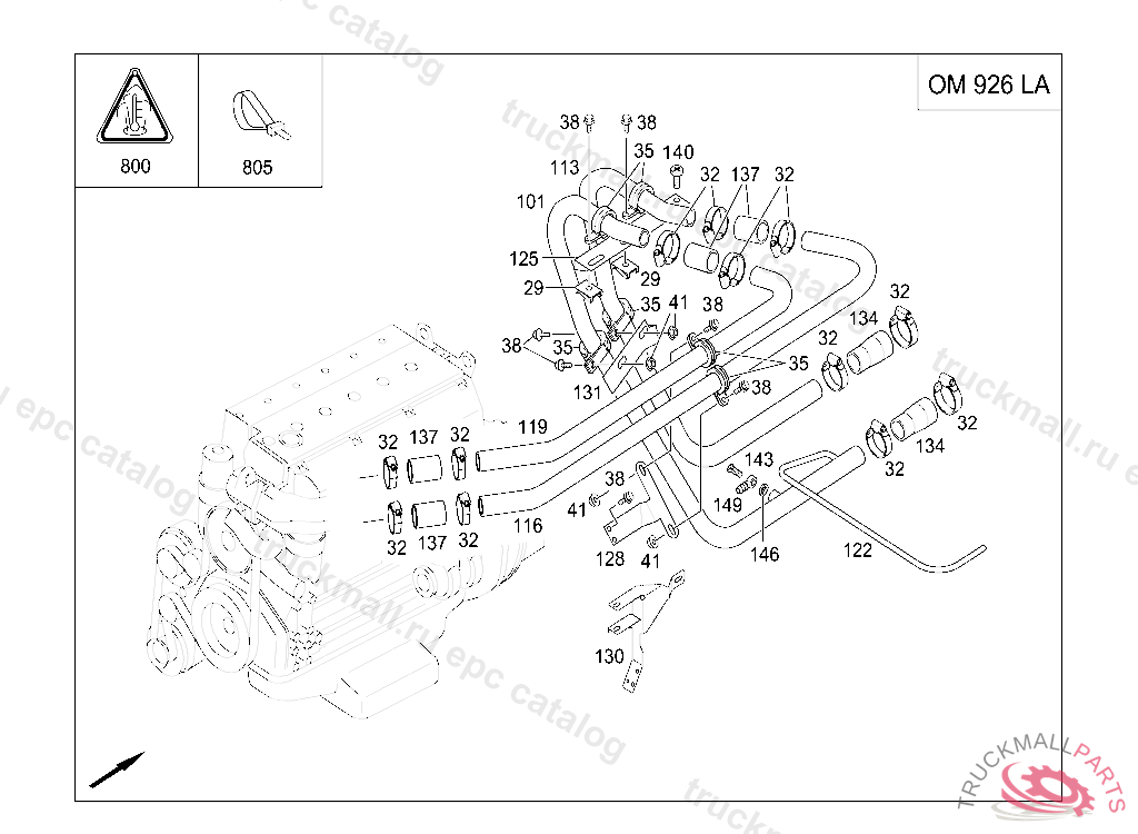 CLAMP DELIVERY AND SUCTION LINES TO ENGINE, FRONT