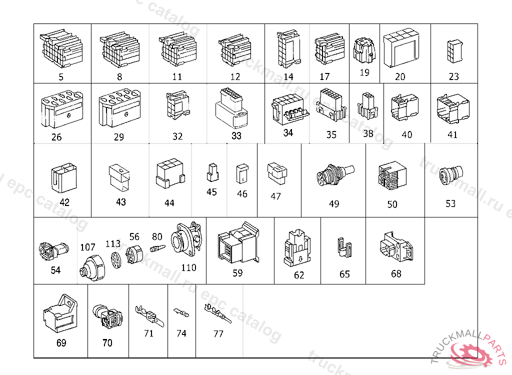 RECEPTACLE HOUSING. PIN BUSHING HOUSING 18-POLE,GREY X1,X2,X3, ST1,ST2, INEVENT OF REPAIR, REPLACE CONNECTOR COMPLETELY