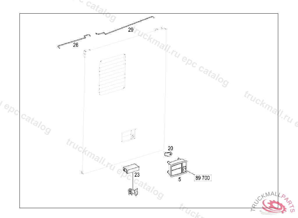 HANDLE MECHANICAL LOCKING, W/O CARRIER, WITHSIDE LAMP, FOR LUGGAGE FLAP, Replaced By: A6297501793
