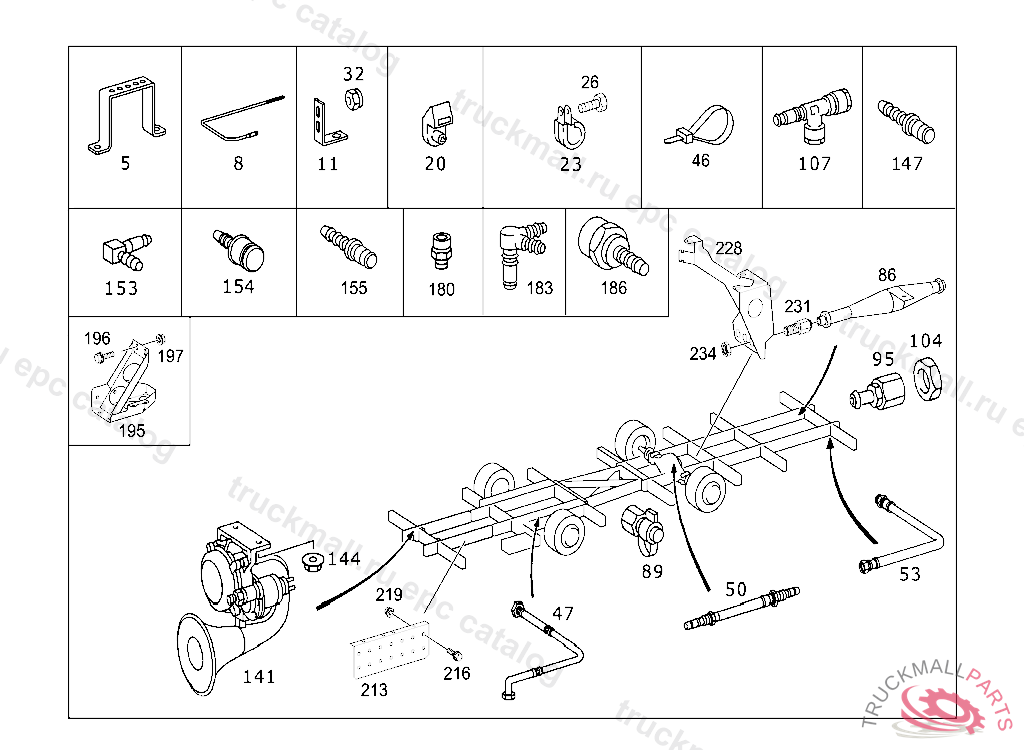 T-FITTING AIR RESERVOIR, UP TO IDENT NO. WEB 105308 EXCEPT FOR 104831-104930,104931-105130,105261,105268-105295,105307. ALSO INSTALLED IN 105317,105318,105324,105382,105388. UP TO IDENT NO.VF9 300288 EXCEPT FOR 300046,300282-300284.