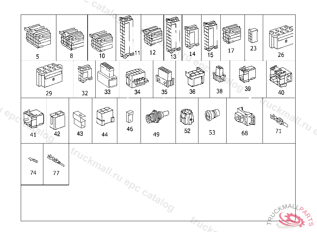 PLUG HOUSING PLUG CONNECTION,WIRING HARNESS FOR ROOF/INSTRUMENT SUPPORT X124, X125, 21 PIN