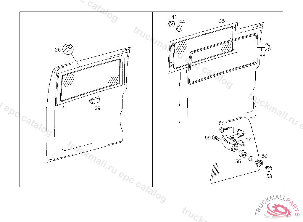 WINDOW , FIRST EXHAUST STOCK OF OLD PARTS UP TO IDENT NO. 053855, Replaced By: A6387301455
