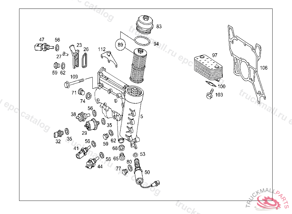 OIL COOLER HOUSING , FITTING A 5411880102 AND SEAL A 5411880080 INCLUDED IN PACKAGE CONTENTS SEAL UNNEEDED THREADED OPENINGS WITH SCREWS/BOLTS BOLT M14 N 007604 014110, SEALING RING N 000000 001069 BOLT M16 N 007604 016108, SEALING RING N 000000 001070