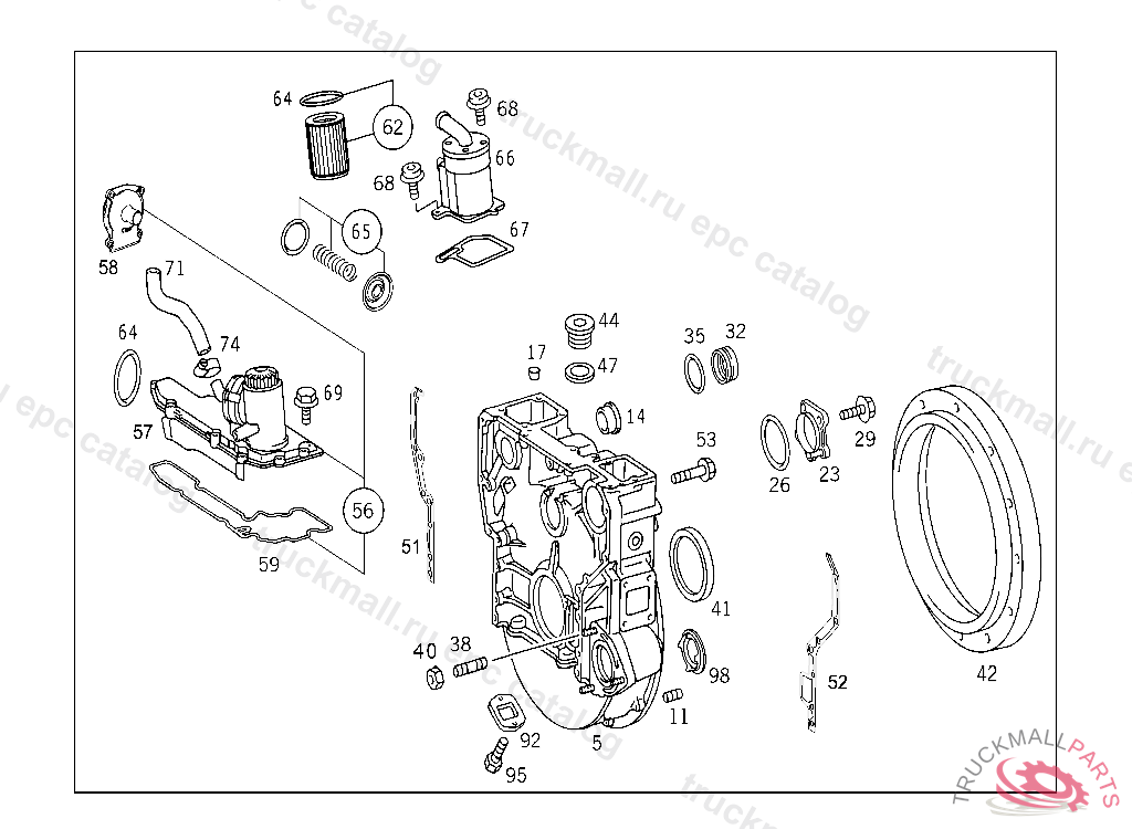 TIMING CASE , AS OF ENGINE 089132 THE OLD PART MUST NO LONGER BE INSTALLED, Replaced By: A5410101533, +001A5410100817, +001A4030150030, +001A5410180712, +001A0059971945, +001A4039970086, +005N304017008033