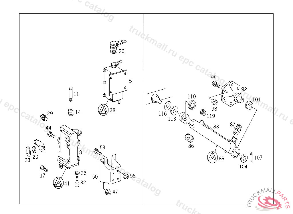 SCREW BEARING BRACKET TO FRAME M 14X20, MODEL 415/416/417 FOR USE WITH SHORT CAB MERCEDES BENZ
