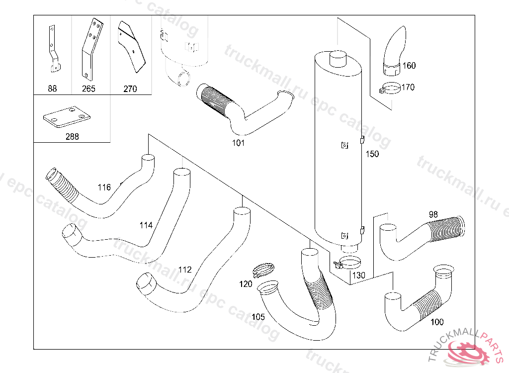 EXHAUST PIPE FRONT V6, USED WITH SHORT DAIMLER-BENZ CAB