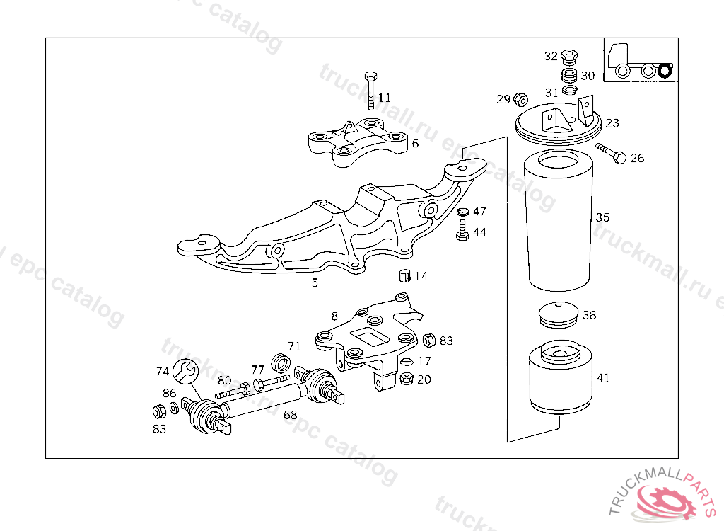 SPHERICAL WASHER AIR-SPRING-BELLOWS SUPPORT TO REAR AXLE