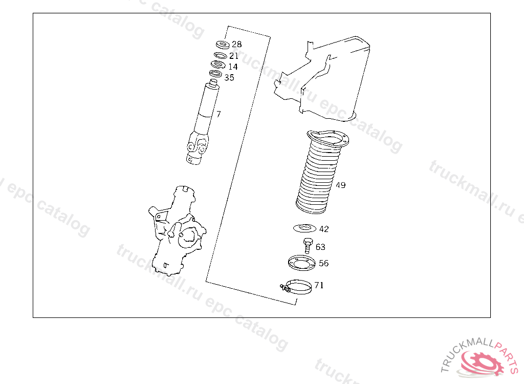 STEERING SHAFTLEMFOERDER, USED WITH SHORT MERCEDES-BENZ CAB
