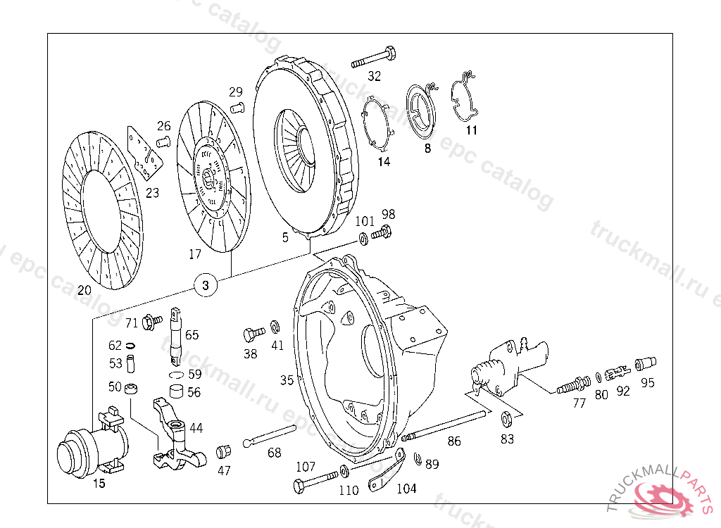 BELL HOUSING , FIRST EXHAUST STOCK OF OLD PARTS UP TO IDENT NO. K 014343, Replaced By: A6552511001