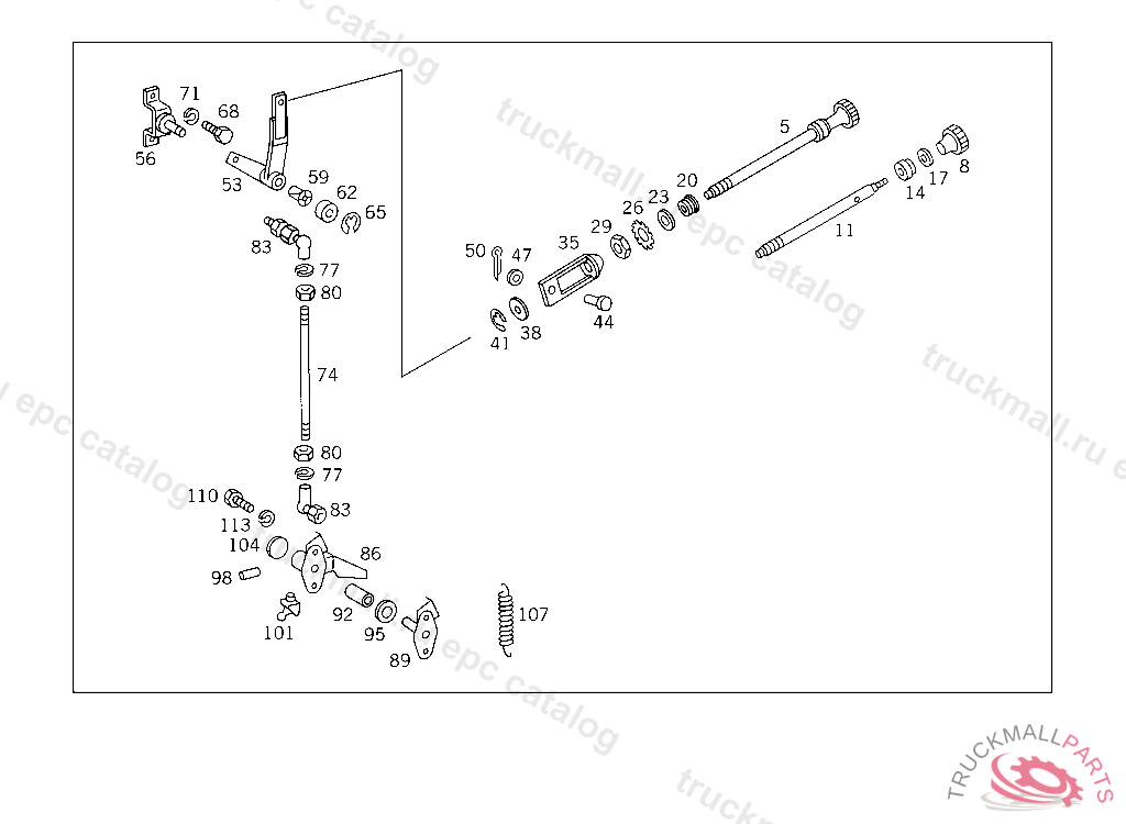 ROD FROM CONTROL LEVER TO SHUT-OFF LEVER, UP TO IDENT NO. 039909 EXCEPT FOR 301.225 WITH COUNTRY CODE 837 UP TO IDENT NO. 039676 301.265 WITH COUNTRY CODE 837 UP TO IDENT NO. 039438