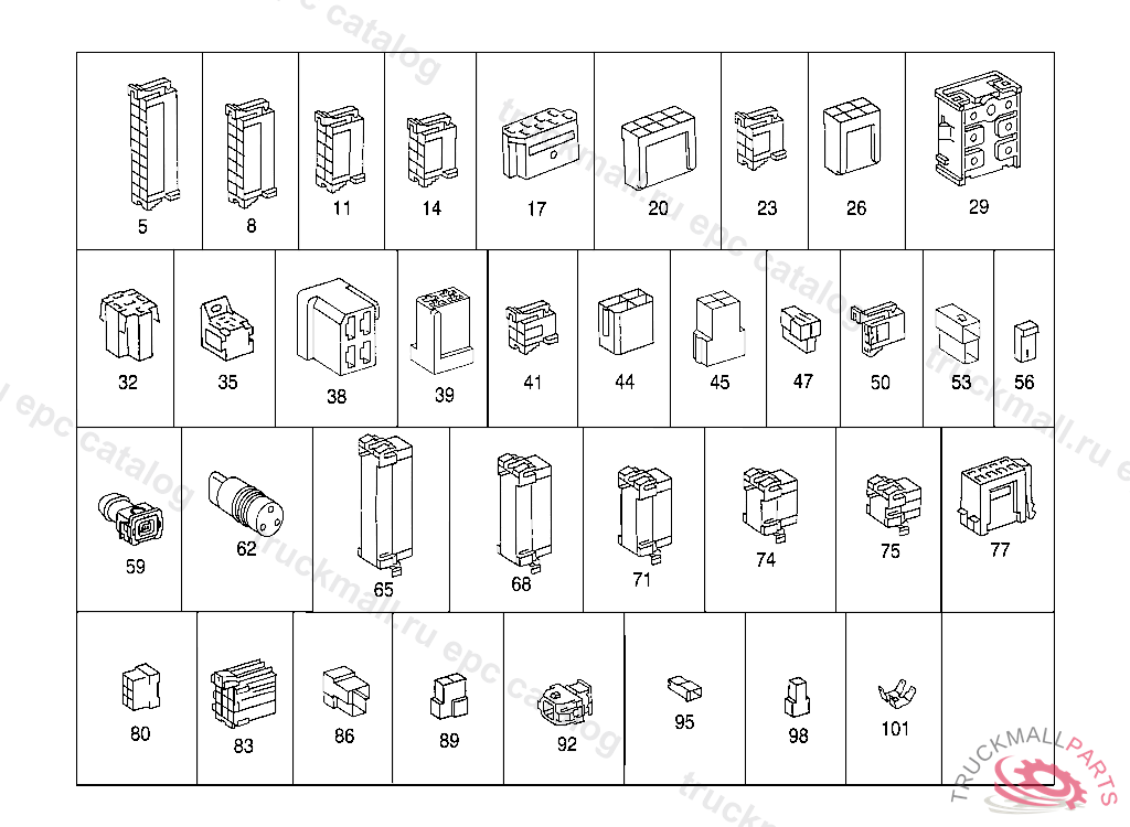 PIN BUSHING HOUSING. PLUG HOUSING FROM CHASSIS/CAB CONNECTION POINT TO TACHOGRAPH
