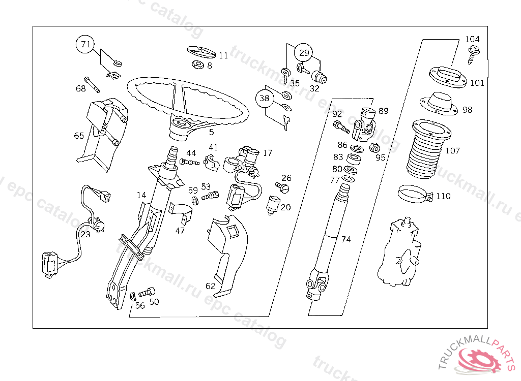BEARING STEERING SHAFT, HOLE SPACING: 90/110 MM, TO BE ADAPTED DURING ASSEMBLY