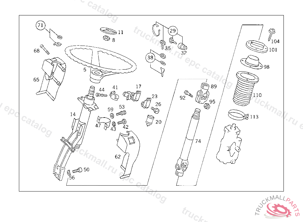 BEARING STEERING SHAFT, HOLE SPACING: 90/110 MM, TO BE ADAPTED DURING ASSEMBLY