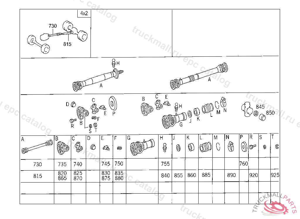 PROPELLER SHAFT FROM TRANSMISSION TO INTERMEDIATE BEARING 839 MM