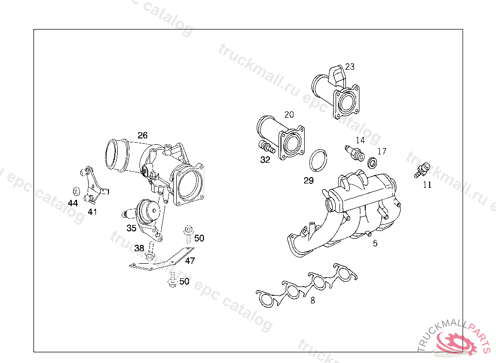 HOUSING , EXHAUST STOCK OF OLD PART NUMBERS FIRST UP TO ENGINE 943 530877, Replaced By: A6010980717