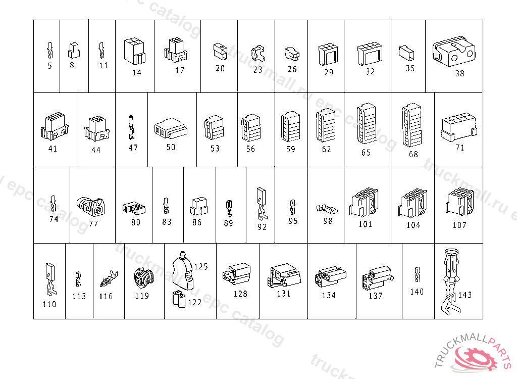 PIN BUSHING HOUSING. PLUG HOUSING FROM CHASSIS/CAB CONNECTION POINT TO TACHOGRAPH
