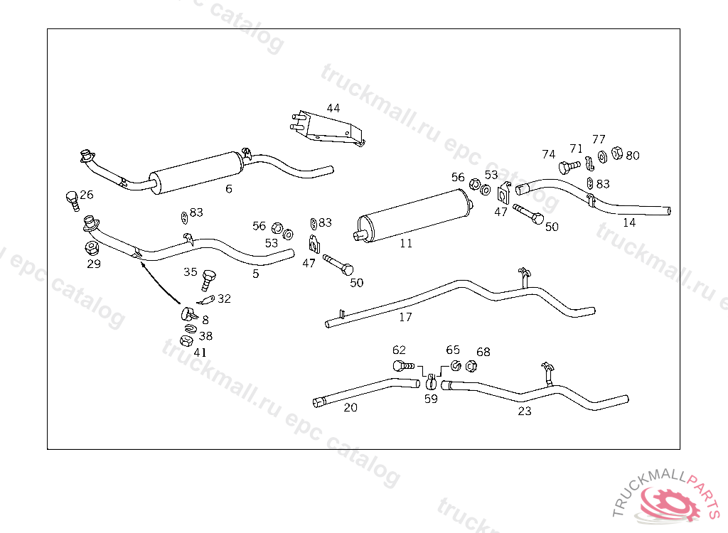 EXHAUST PIPE REAR, UP TO CHASSIS 240084 FROM CHASSIS 500000-556499