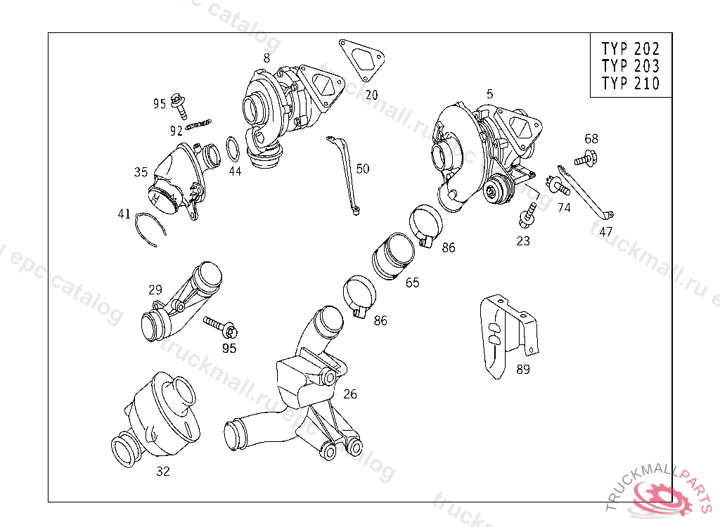CHARGING AIR LINE TURBOCHARGER TO EXHAUST MANIFOLD,30 033631