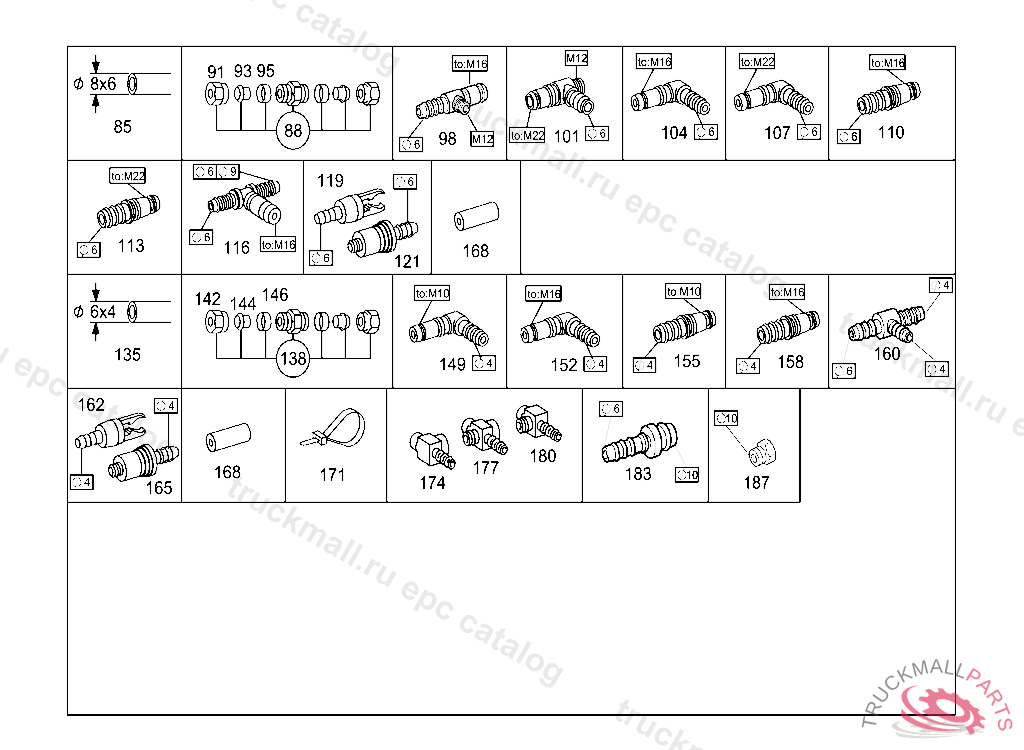 CONNECTION PIECE COMPRESSED-AIR-LINE PLUG-CONNECTION TO M16, 6MM, VOSS 232, Replaced By: A0049976989