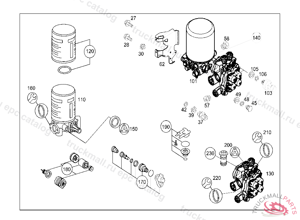 42 BRAKES - 190 PRESSURE REGULATOR,DEHYDRATOR, FOUR-CIRCUIT PROTECTIVE VALVE IL. 2