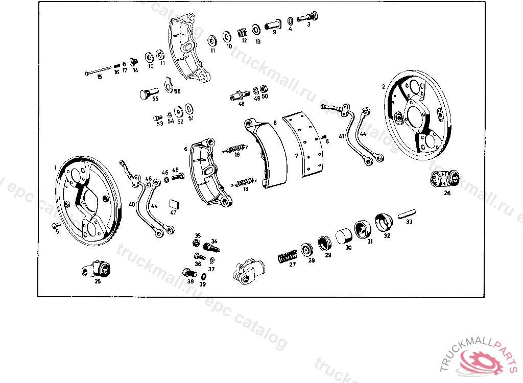WASHER OPTIONAL BRAKE SHOES TO ADJUSTING PINS, UP TO CHASSIS 5500167 WITH THE EXCEPTION OF 5500131, 5500132, 5500136, 5500137, 5500151 TO 5500154, 5500159, 5500161 TO 5500166 UP TO REAR AXLE 5500160