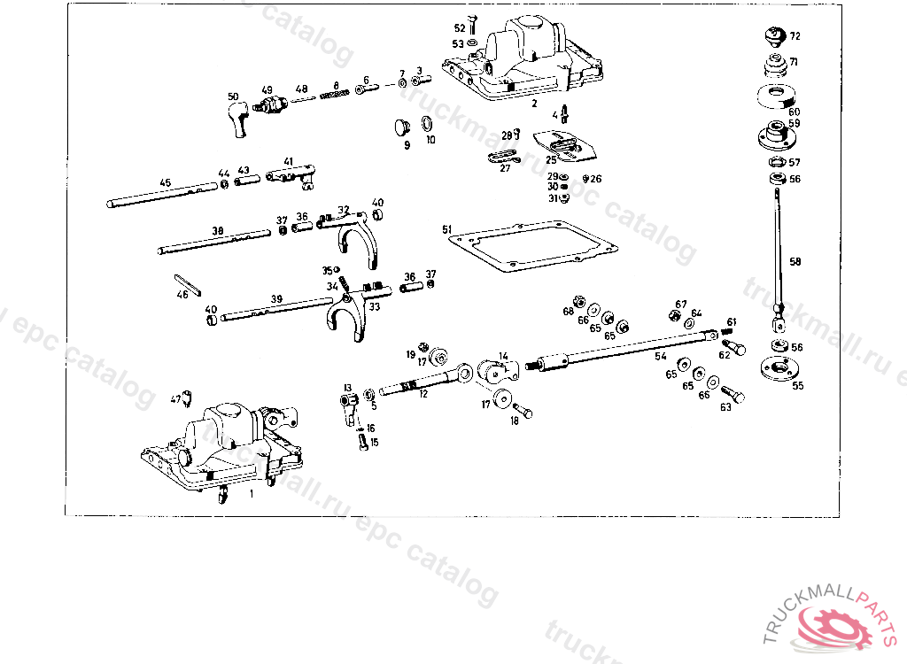 GEARSHIFT LEVER. SCHALTHEBELLAGER OBEN AB GETRIEBE-NR. 45 00056 (GERADER SCHALTHEBEL)