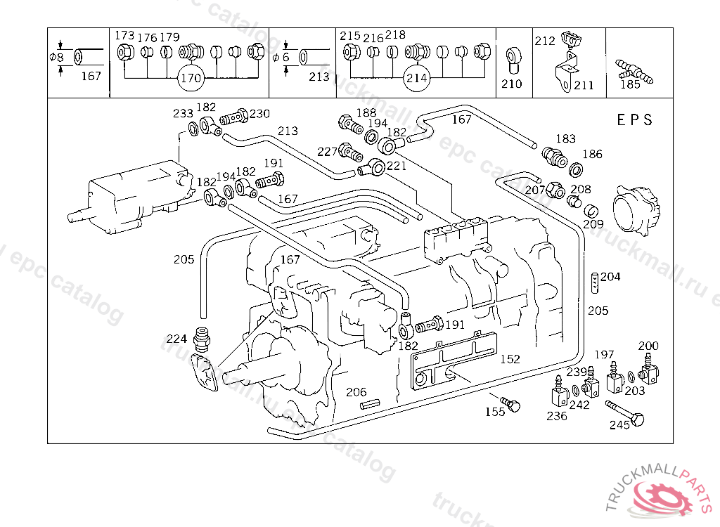 LINE FROM 4/2-WAY VALVE TO ADDITIONAL GEARBOX CYLINDER, SLOW GROUP "25,47"