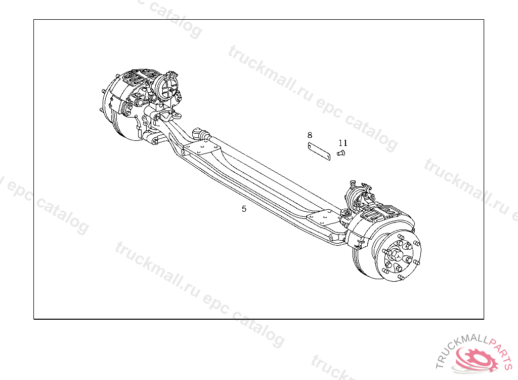 FRONT AXLE , IDENTIFY MAJOR ASSEMBLY FROM VEDOC OR ORDER BY SPECIFYING THE VEHICLE IDENT NO. OR MAJOR ASSEMBLY NUMBER. DETERMINE COMPONENTS IN VEDOC WITHMAJOR ASSEMBLY IDENT. END NUMBER