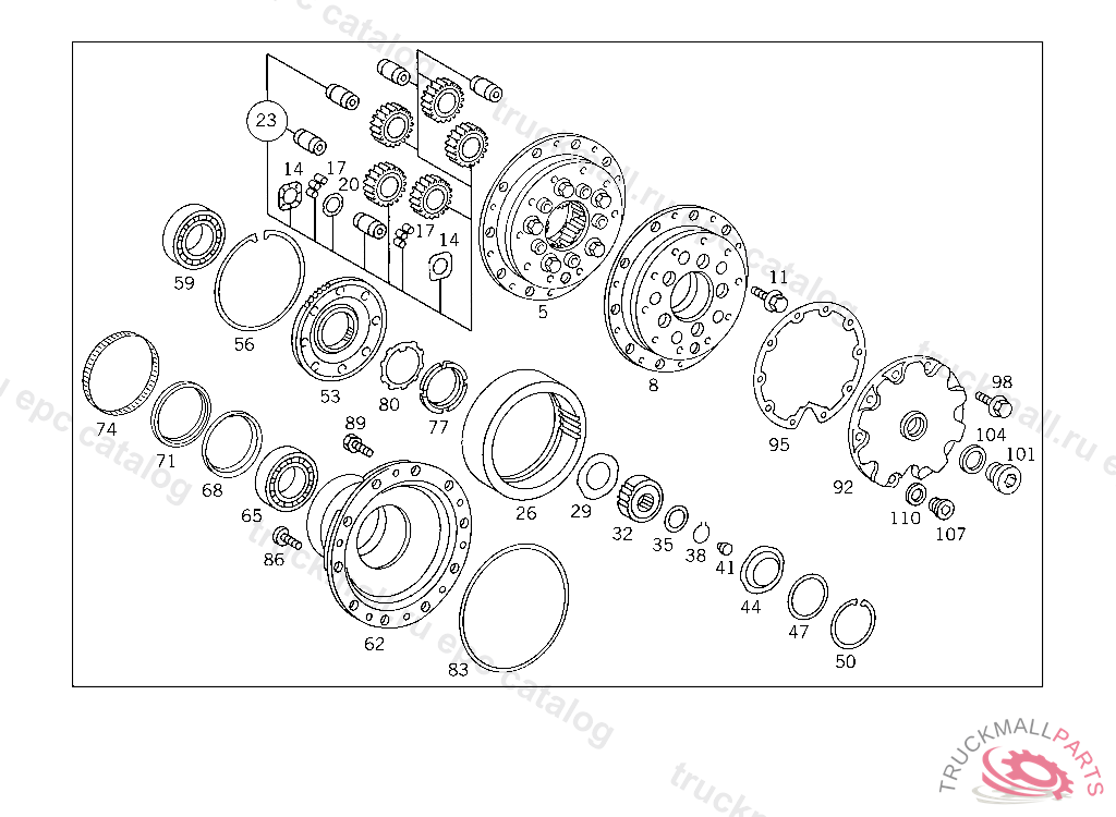 PLANETARY GEARING FRONT AXLE, FOR COMPONENT PARTS SEE SPARE PARTS LIST