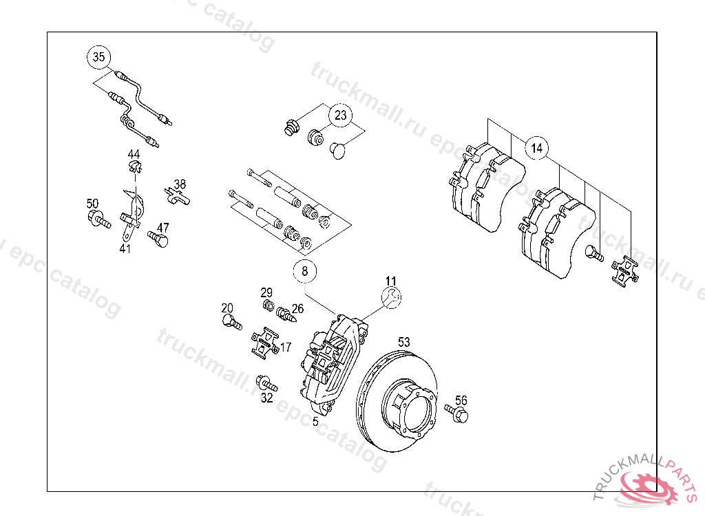 FRONT WHEEL BRAKE ASBESTOS-FREE,WITH WEAR INDICATOR, RIGHT,WITH LINING MERITOR, IN THE CASE OF INDIVIDUAL ASSEMBLY,ONLY USE BRAKE CALIPER OF THE SAME MAKE