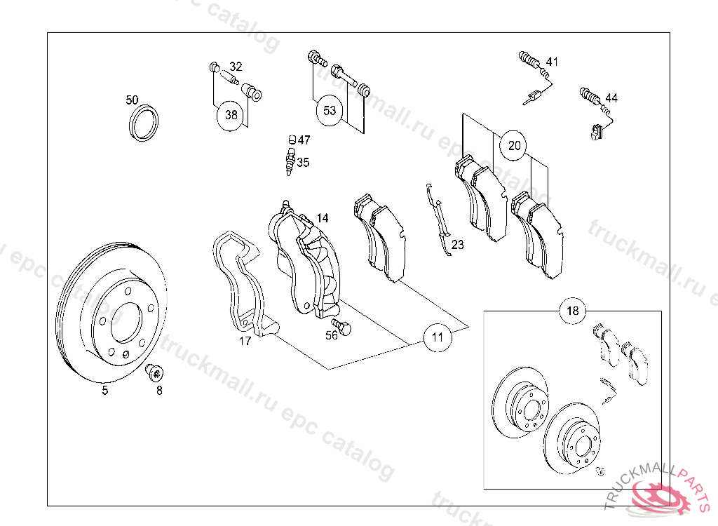 TS DISK BRAKE PAD PARTS KIT WITH SAFETY SCREW AND RETAINING SPRING WABCO, WHEN ORDERING,THE MAKE FITTED TO THE VEHICLE MUST BE DETERMINED: ONLY FOR ALL-WHEEL-DRIVE VEHICLE, MAKE OBERAIGNER WHEN SELLING BRAKE LININGS TO END USERS/DESK BUYERS THE A 203 005 25 99 IS TO BE HANDED OVER FREE OF CHARGE