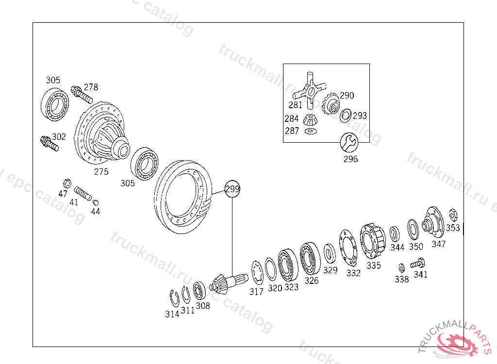 DIFFERENTIAL GEAR , FIRST EXHAUST STOCK OF OLD PARTS FROM FRONT AXLE 2 168836-2 384800, Replaced By: A3603306823, +002A3853350025, +002A0059815505