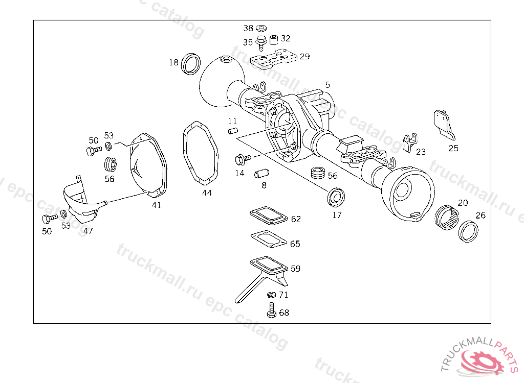 FRONT AXLE HOUSING WITH REAR AXLE TUBES