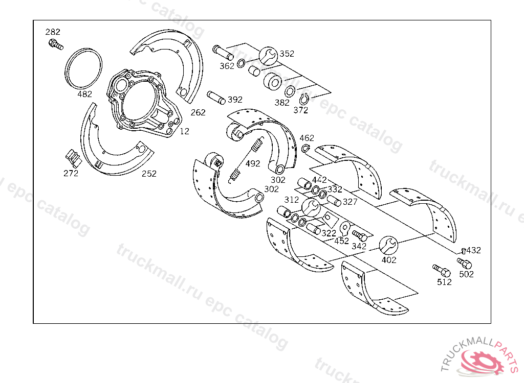 BRAKE SHOE , EXHAUST STOCK OF OLD PARTS NUMBER FIRST UP TO FRON AXLE D 027673,E 092867,G 009579, Replaced By: A3934202419